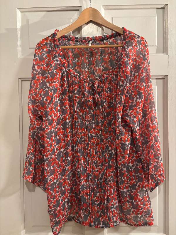 Rauð og grá blússa