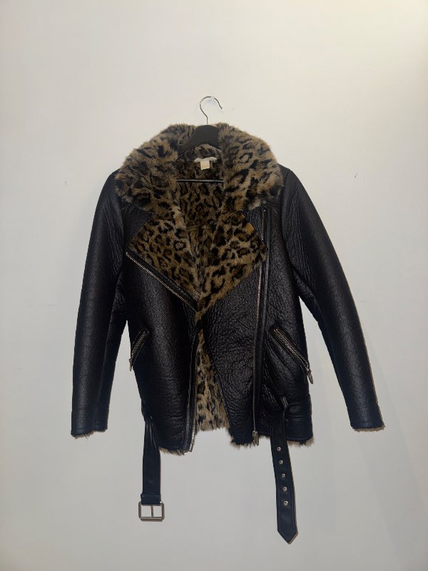 Svartur jakki með hlébarðaloði