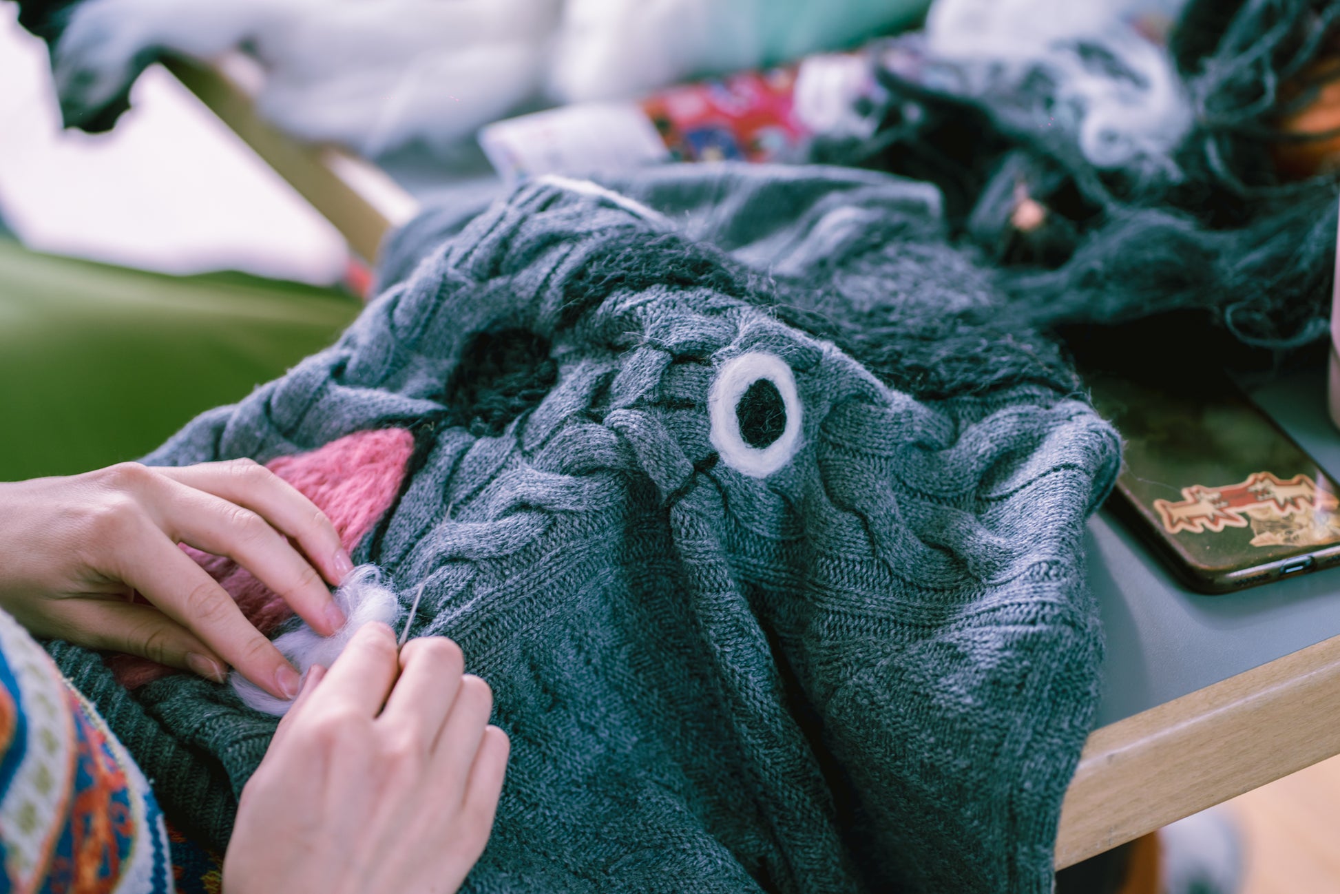 Ýrúrarí leiðir skapandi peysusmiðju í samstarfi við Hringekjuna, þar sem við gefum gömlum peysum nýtt líf með ímyndunarafli, þræði og leikgleði.