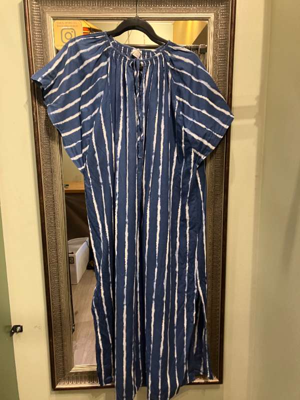 Síðkjóll blá-hvít stripe