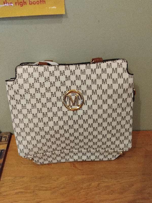Skvisutaska hvit gyllt ned bandi